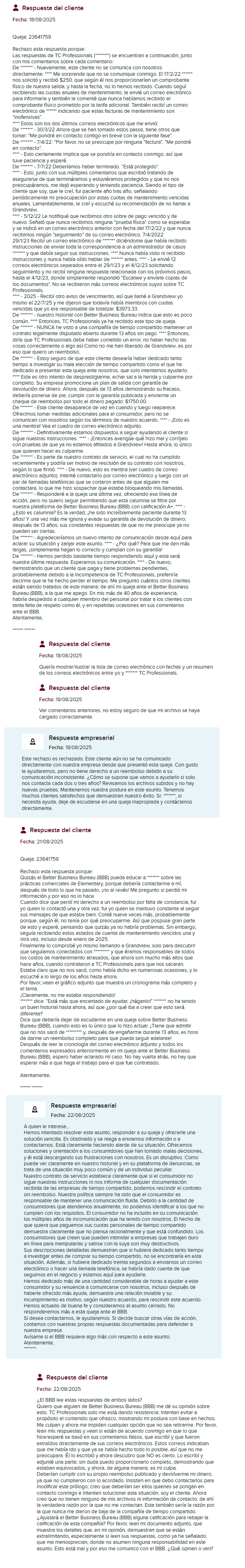 Una de las pocas quejas formales registradas también muestra una respuesta defensiva y poco acertada, donde TCP evita contestar directamente a las inquietudes del cliente en lugar de abordarlas.