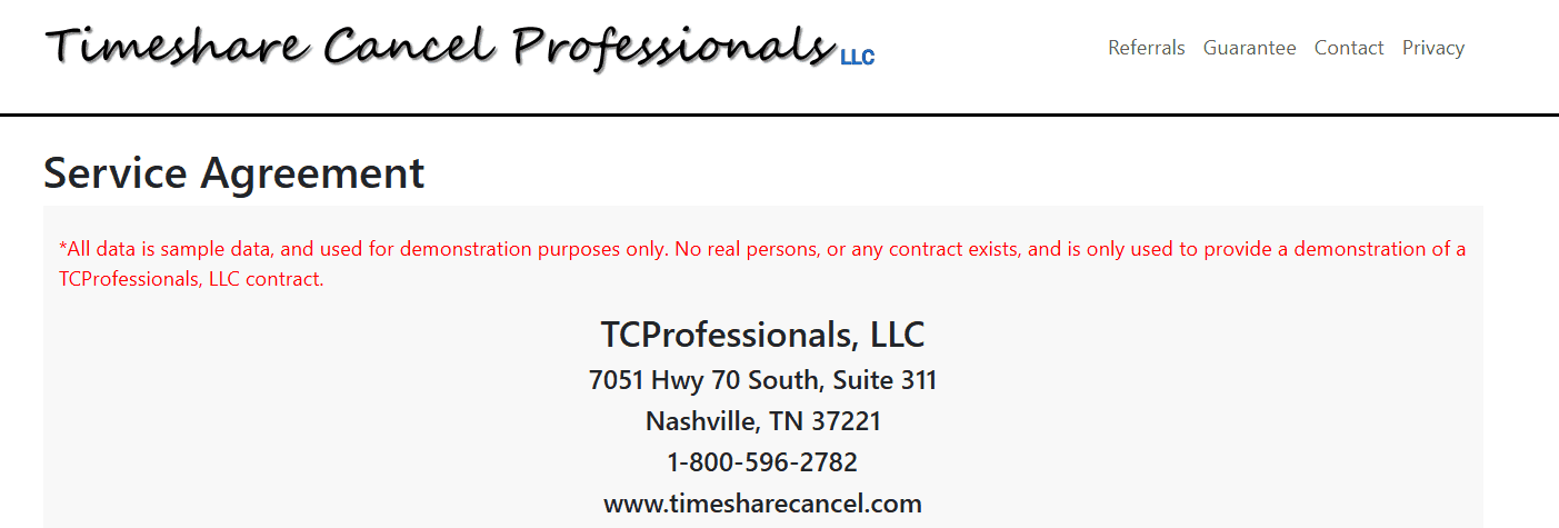 Uno puede preguntarse de vez en cuando: ¿quién demonios es el dueño del tan codiciado dominio timesharecancel.com? Con un nombre así, uno pensaría que habría una docena de empresas de cancelación de tiempo compartido peleando a muerte por obtenerlo. Sorprendentemente, sí tiene dueño: una compañía que opera bajo el nombre Timeshare Cancel Professionals, o TCP, que parece haber existido desde al menos 2010.