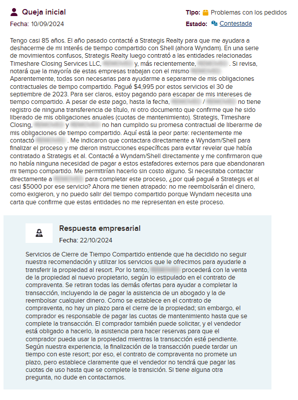 La conclusión aquí no se limita únicamente a Timeshare Closing Services, sino que refleja un problema estructural con las empresas de transferencia de tiempos compartidos en general.
