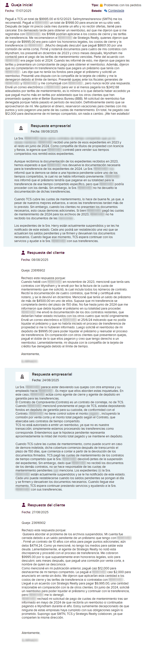 Las transferencias son inherentemente poco confiables. Empresas como TCS pueden cobrar honorarios mientras los propietarios esperan meses o incluso años, aún legalmente atados a un tiempo compartido que se les prometió eliminar. En muchos casos, esa transferencia simplemente nunca ocurre.