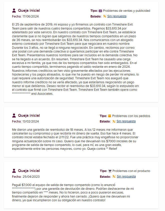 Timeshare Exit Team construyó su marca a través de publicidad agresiva y campañas de marketing masivas. Dependían de respaldos pagados, ventas de alta presión y exigían el pago completo por adelantado. Después de cobrar, la comunicación con muchos clientes se volvía lenta… o desaparecía.