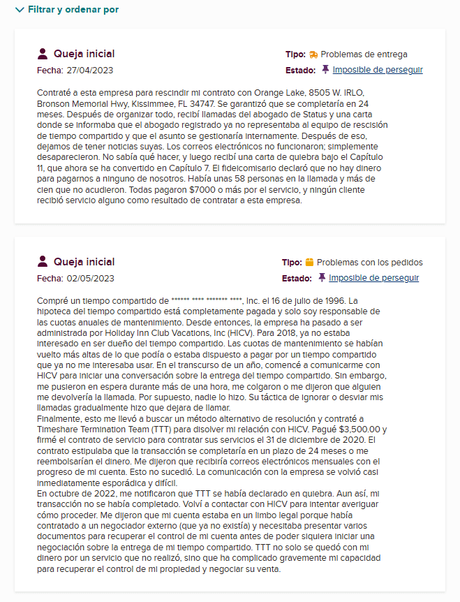 A finales de 2020, Bluegreen Vacations presentó una demanda contra TTT por publicidad engañosa e interferencia contractual. La reputación del equipo se desplomó casi de inmediato. Las reseñas negativas se multiplicaron, y clientes decepcionados comenzaron a denunciar promesas rotas, pérdidas económicas y silencio total por parte de la empresa.